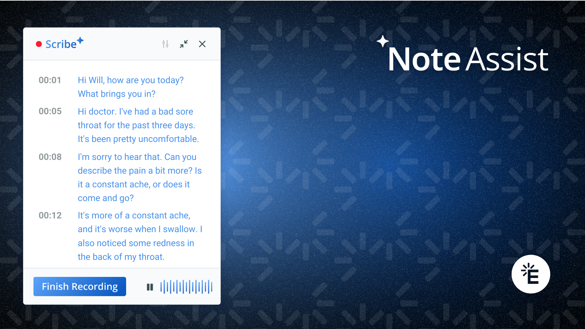Seamlessly integrated within Elation’s EHR, Note Assist utilizes advanced AI to capture patient-provider conversations and generate structured, high-quality notes in real-time.Â