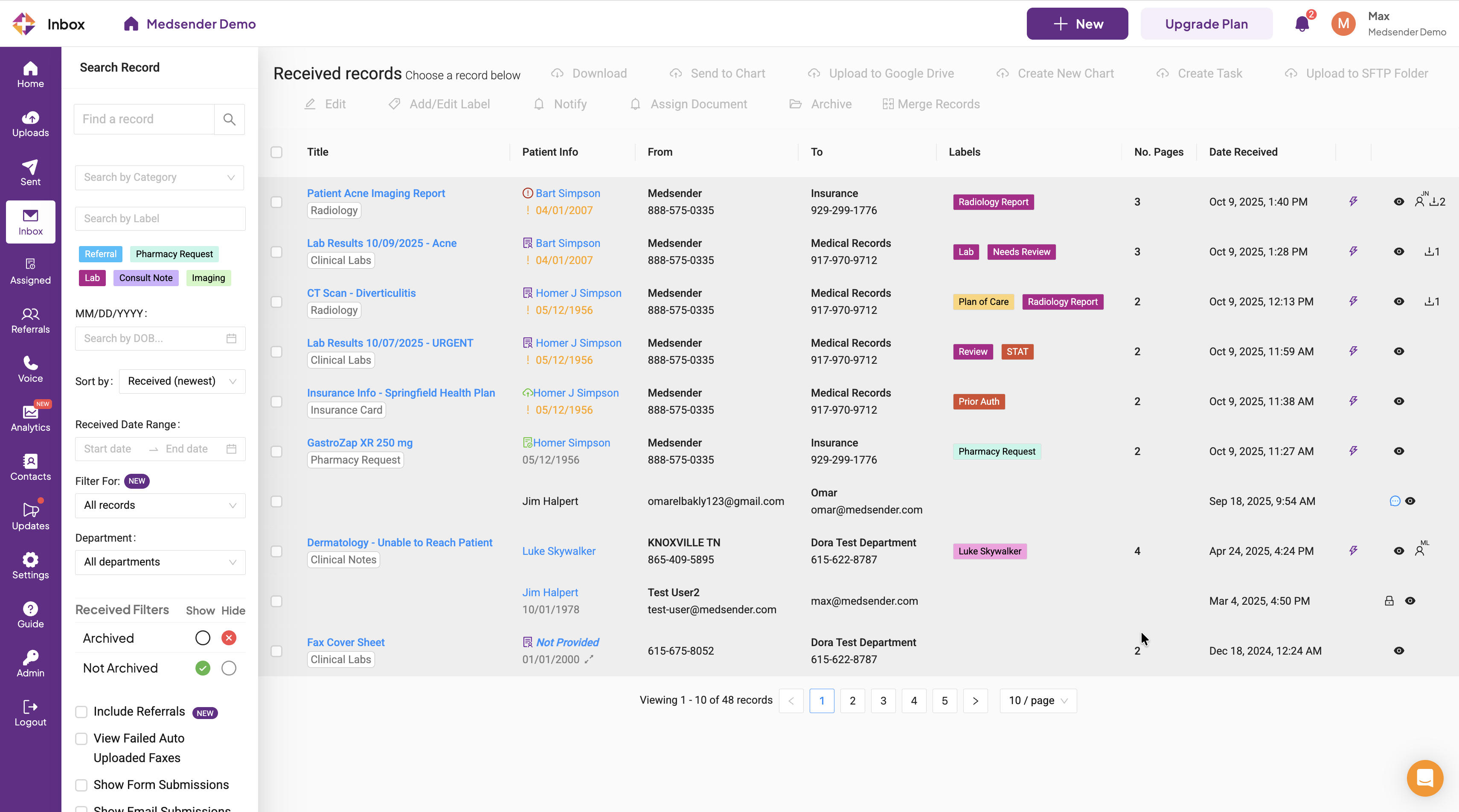 We are extremely pleased with the technology and effectiveness of Medsender. We replaced multiple fax systems and streamlined workflows, reducing FTE’s to sort daily volume. The team at Medsender was amazing to work with.”