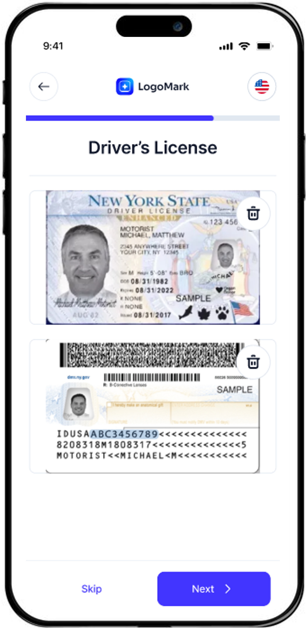 Patients can take a snapshot of IDs and insurance. Automatically pulls relevant text using optical character recognition (OCR) technology.
